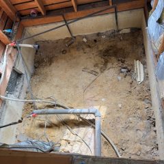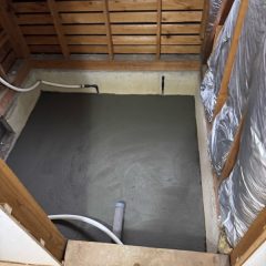 解体後は、床下や下地の状態を確認し、必要な補修を行ったうえで新しい浴室を施工しています。
