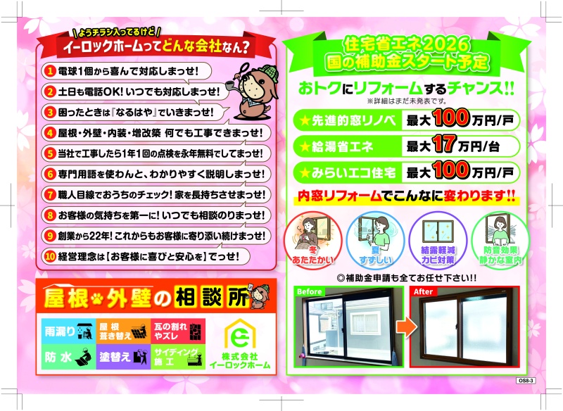 - 2026.03.02イーロックホームってどんな会社なん?国の補助金スタート予定!内窓リフォームでこんなに変わります!